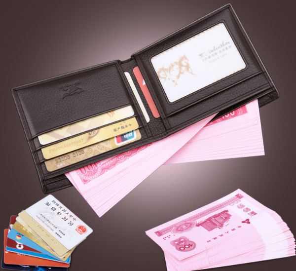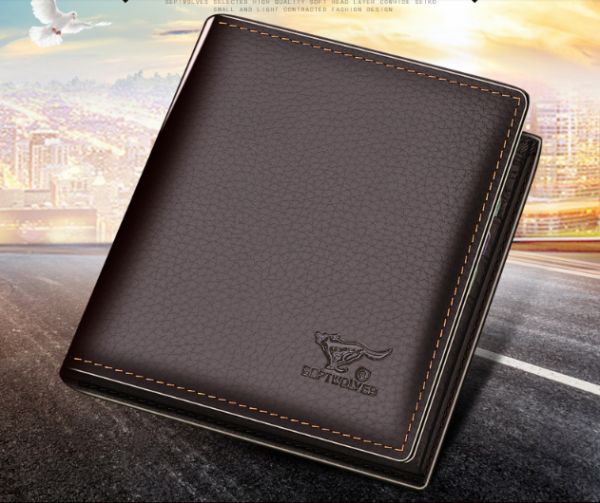 Elegant style Septwolves Men Genuine leather short paragraph Wallet Brown