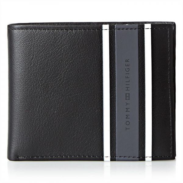 TOMMY HILFIGER URBAN STRIPE MINI CC WALLET FOR MEN -BLACK