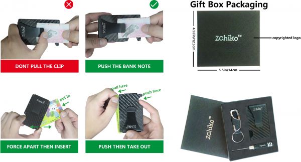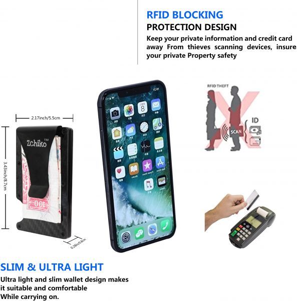 Minimalist Wallet:The wallet is made of carbon fiber material which better than alloy. Zchiko™ Band wallet is slim, light body Fashionable and convenient appearance,RFID blocking protection design. Zchiko™ Band provided, Let everyone be free from the heavy purse strings and apply to everyone.