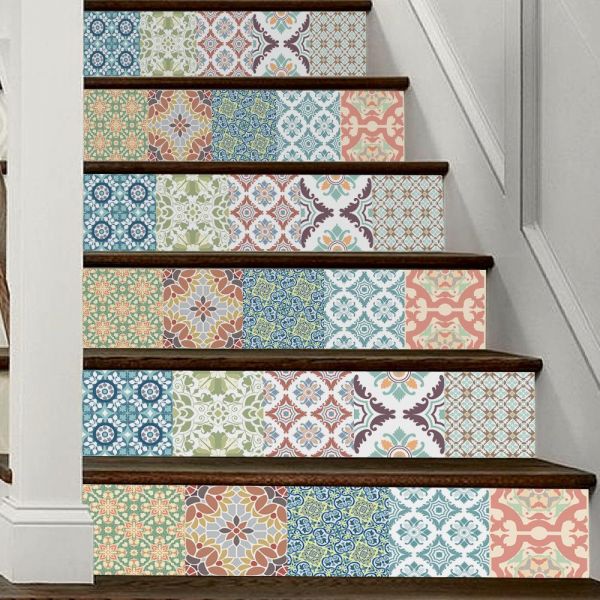 Mediterranean style Style Wall Stair Sticker Tile Backsplash DIY Decals Peel and Stick Removable Sta