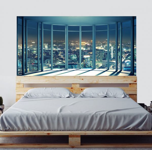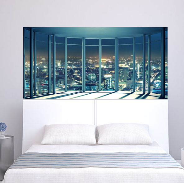 3D Windowsill City Night View Bedside Wall Sticker For Bedroom Decoration Large Poster Wallpaper DIY