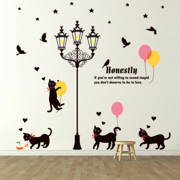 Street Lights Under The Cat And The United States Wall Stickers Living Room Bedroom Creative Decorat