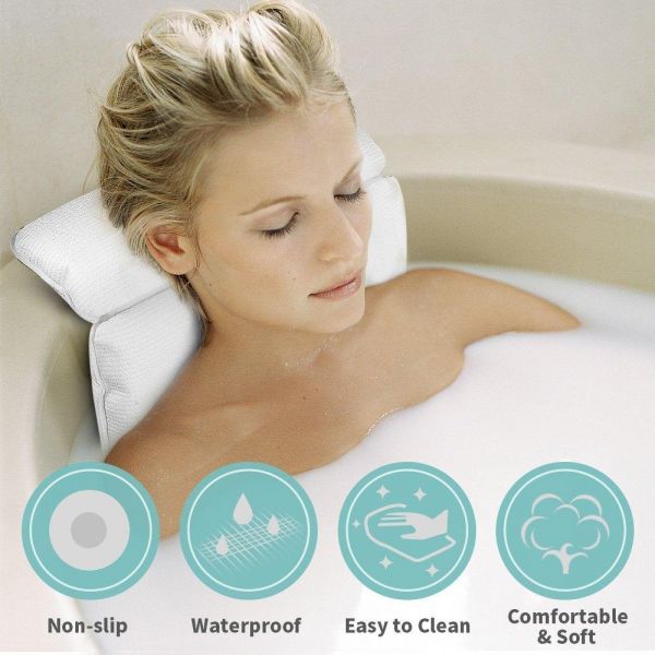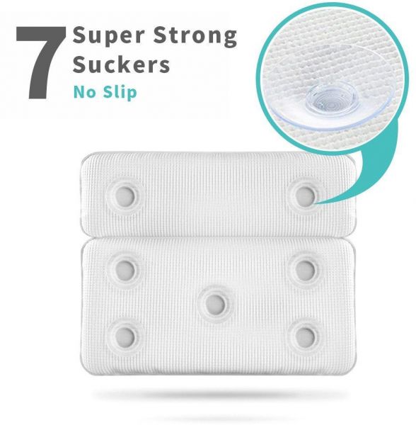Non Slip Bath Pillow, Waterproof Spa Bathtub Pillow Mat with 7 Strong Suction Cups for Any Size Tub