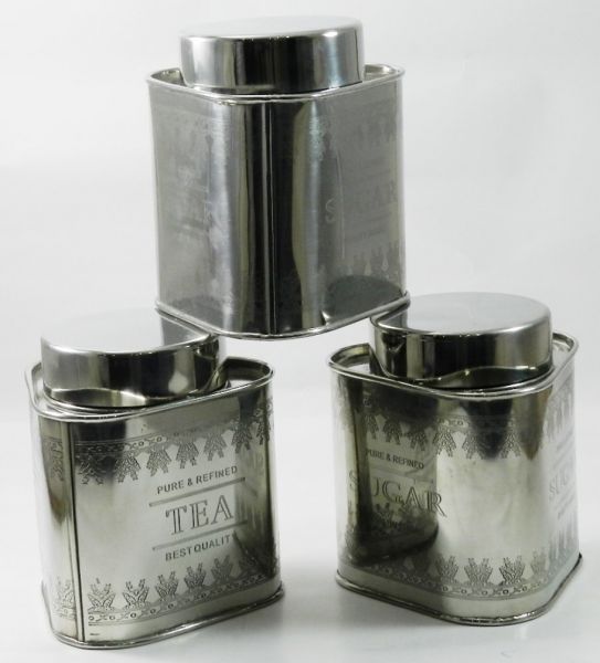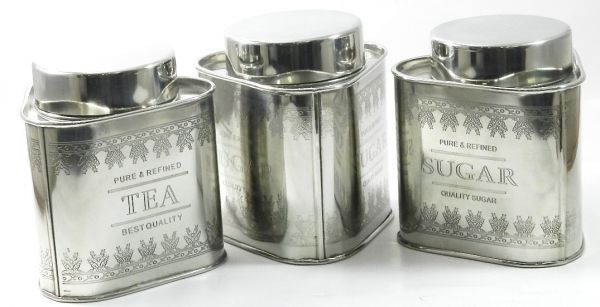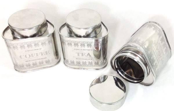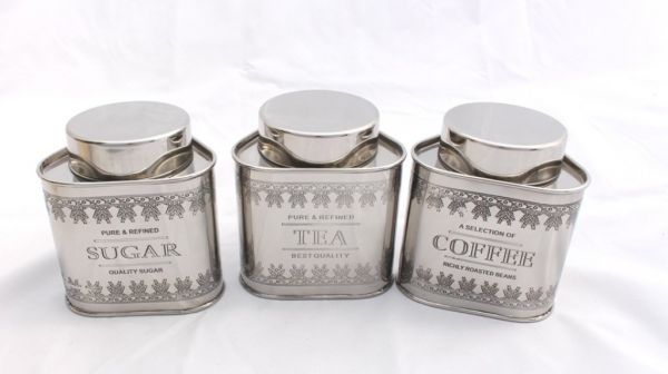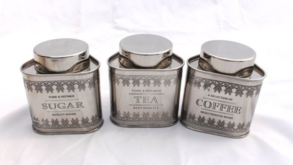 GARIAN's stainless steel vintage canisters are handcrafted in stainless steel material with mirror finish. Canisters have beautiful engraving Tea Coffee and Sugar. These metal canisters have silicone rubbers inside the lids, making canisters air tight. A modern look yet Vintage by roots, product provides retro themed kitchen storage.