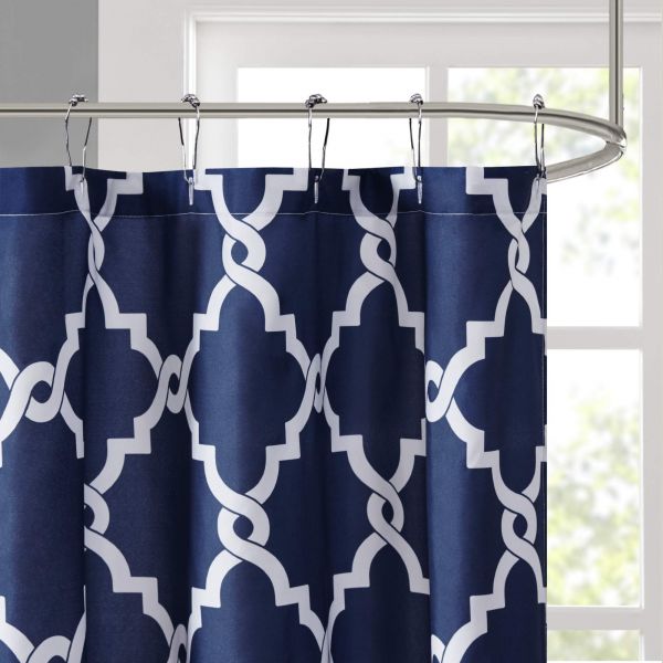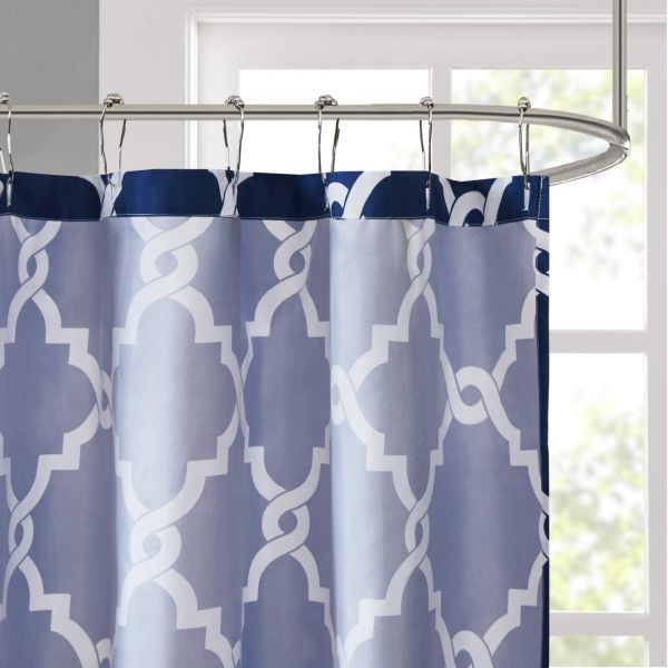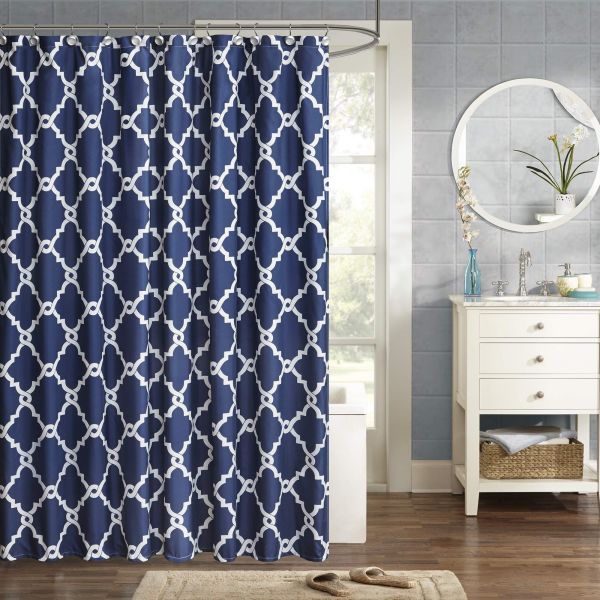 For a simple yet modern update to your bathroom, the Madison Park Essentials Merritt shower curtain is perfect for you. Several fresh colors are available for background to update your space while the classic fretwork design uses white to pop this pattern. Various sizes are available to fit any bathroom space.