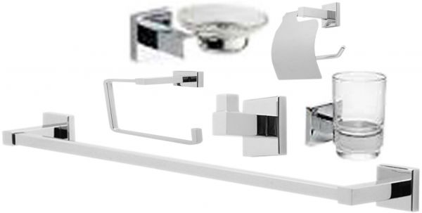 - Assembly : Titan Bathroom Accessories sets , BAS -5201 BS -Single Tower Bar, BAS - 5210 B - Tumbler Holder , BAS - 5209 B - Soap Dish Holder , BAS - 5212 B -Robe Hook , BAS - 5213-1 B - Toilet Paper Holder , BAS - 5214 B - Towel Ring , with Brass Polished Finished quality Bathroom Accessory 6 Pieces Square Sets.