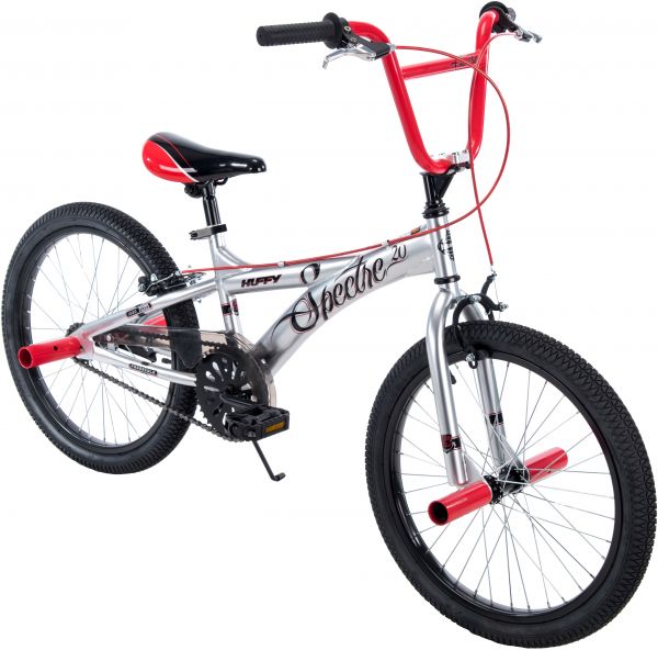 - Details: Steel Y with gusset frame, steel uncrowned with leading edge dropouts fork, front and rear handbrake, glossy padded seat with graphics, steel 36 spoke, green rims, freewheel rear hub, 4 bolt stem provides superior comfortable huffy bmx grips, alloy quick release seat adjustments.