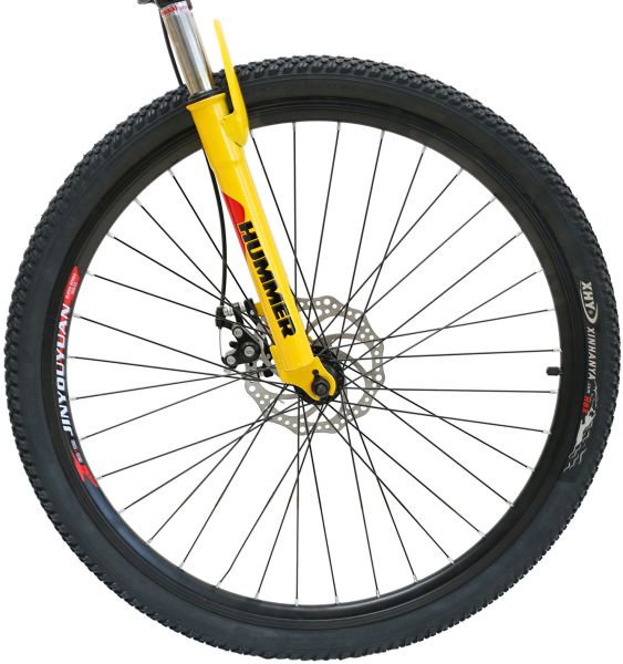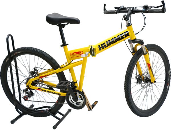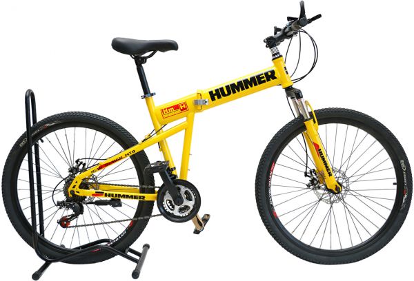 Specifications : Brand : HummerColor :YellowBike Brake Type : Disc BrakeFrame Material Type : SteelProduct weight : 14.5KgBicycle Type : Folded BikeWheel Size : 26 InchNumber of Speeds : 21