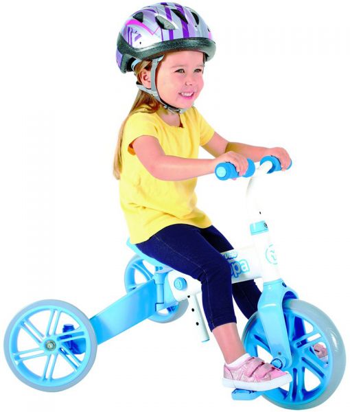 Y Volution balance bike gives the rider greater balance in a three wheeled trike formation. Y Velo balance bike is available in a blue color finish.The Y Volution YVelo Ride-On Toy is a terrific 2-in-1 bike that can be smoothly switched from a trike mode to a balance bike mode as your child grows. This bike is innovatively designed and features a wheel adjustment technology that helps your child to learn and develop with confidence. This trike mode present on this bike enables the kids to enjoy the stability of having three wheels and pedals while giving them the first-hand experience of riding a bike. Also, the cushioned seat of the bike ensures maximum comfort for users. This bike has an overall weight of 11kg. The adjustable seat and a handle bar on this balance bike ensure the perfect fit.
