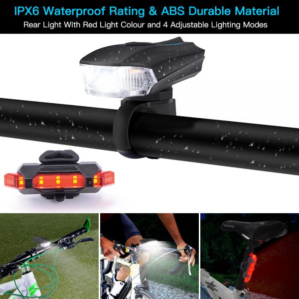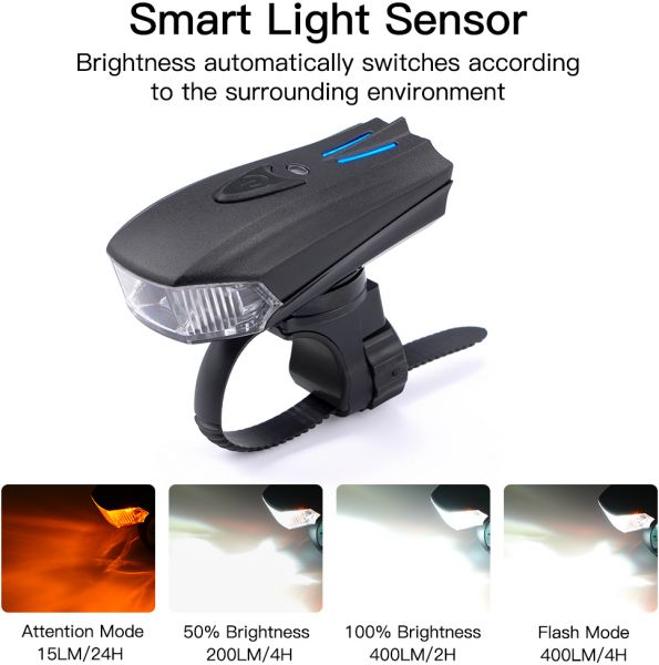 ✔FEAR NO DARKNESS - 80% of fatal cycling accidents happen at night due to lack of vision. Don't become another horror story! Cheap bike lights are not safe nor durable. This high-quality BIKE LIGHT use improve beam, max up 400 lumen, 180° wide angle light, beam length up to 400 feet, bike front light-Taillight Combinations is the best way to ensure your cycle safety.