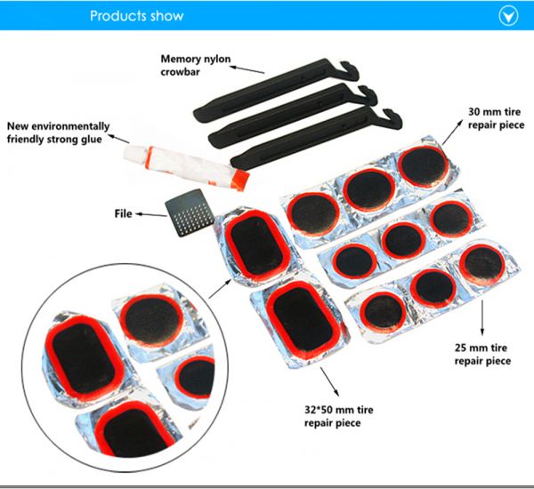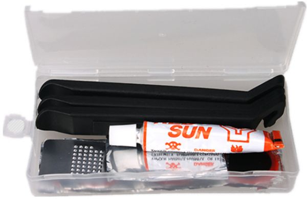 SIMPLE TO USE: Scuff punctured area with metal scuffer (provided) squeeze glue around punctured area and wait 5 minutes. Peel off sliver backing on patch and place over glued area. Press firmly to insure vulcanization. Remove clear top plastic from patch and it's ready for use.