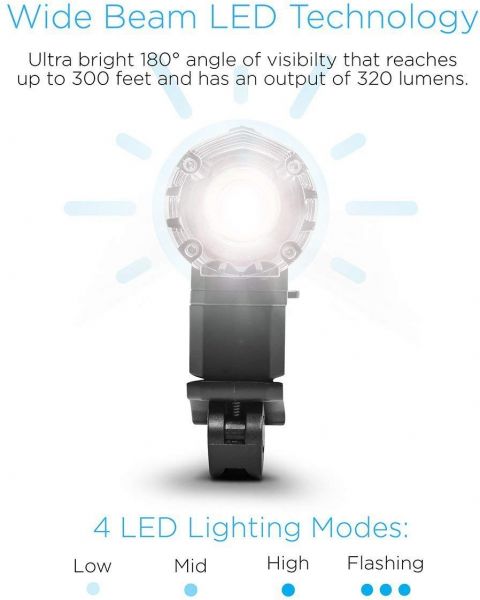 strobe) for the headlight. The rear light has 6 working modes (low,