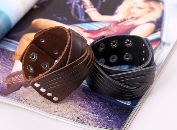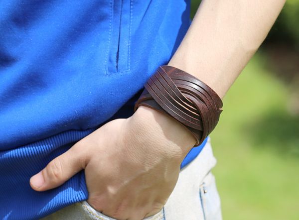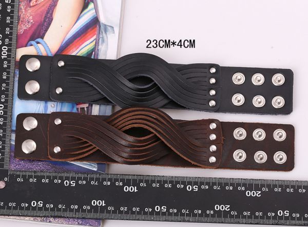 Vintage Multilayer Leather Woven Wide Bracelets & Bangles for Men Charm Wristband Jewelry Boy Girl G
