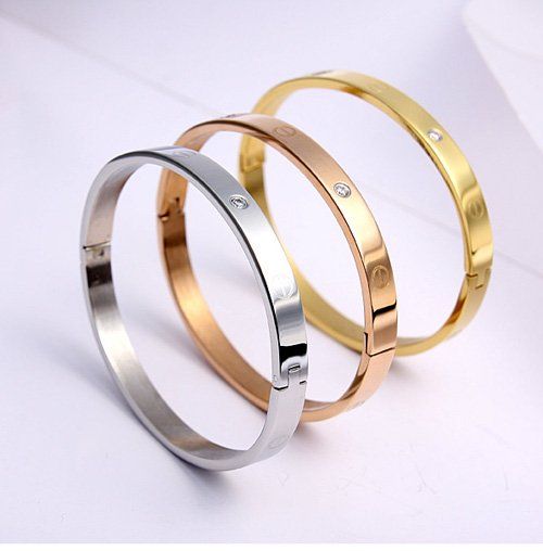 18K Real Gold Plated Cartier Style Bangle w/ Rhinestones