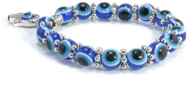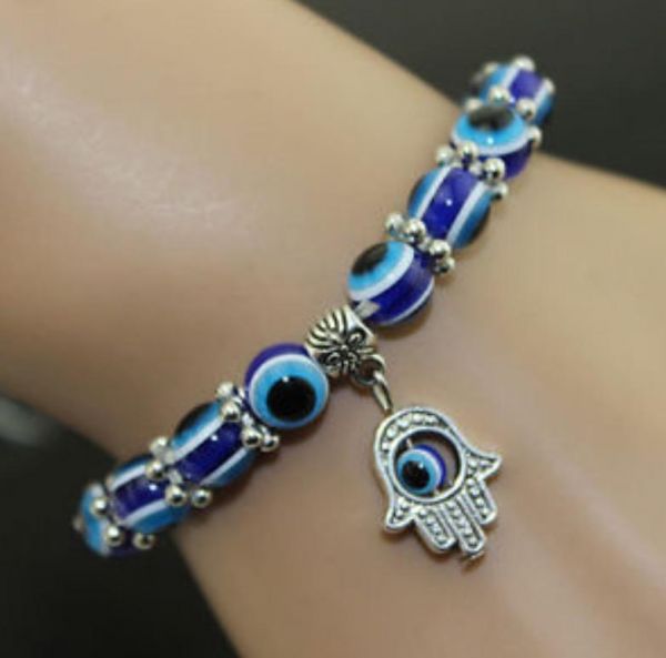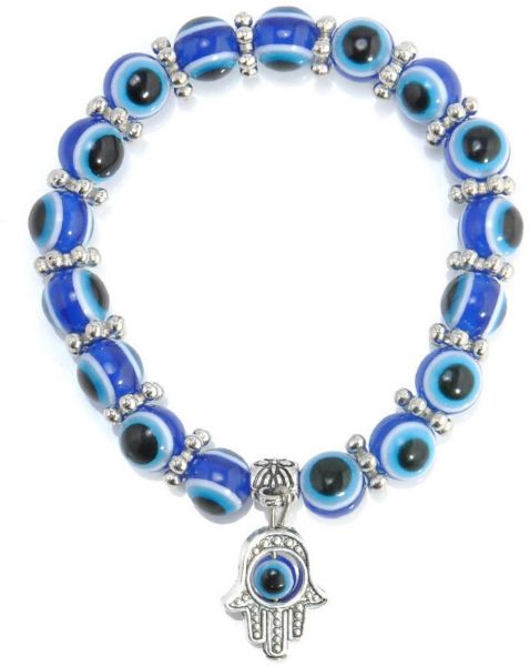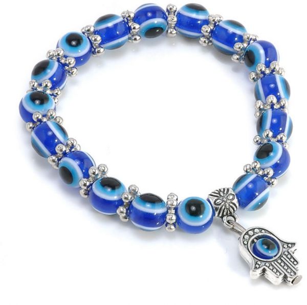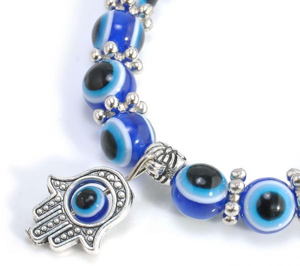 Hamsa Charm Blue Evil Eye Beaded Bracelet
