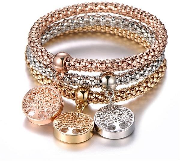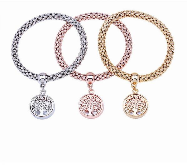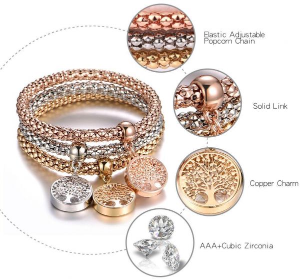 3Pcs Tree of Life Bracelet Popcorn Owl Heart Anchor Musical Note Charm Bracelets For Women