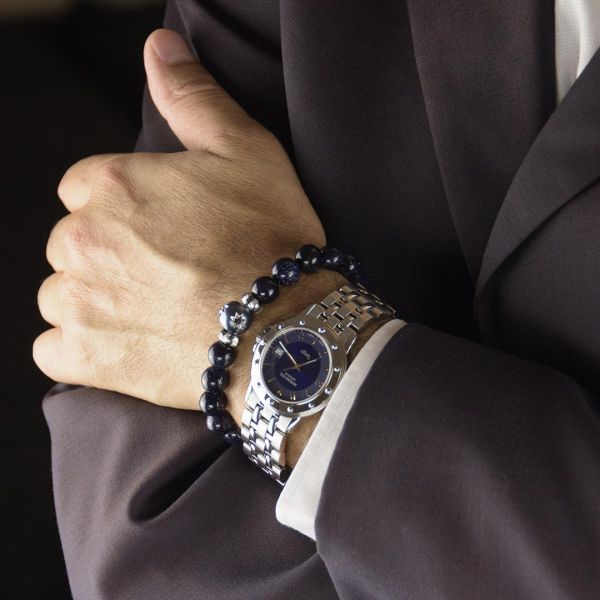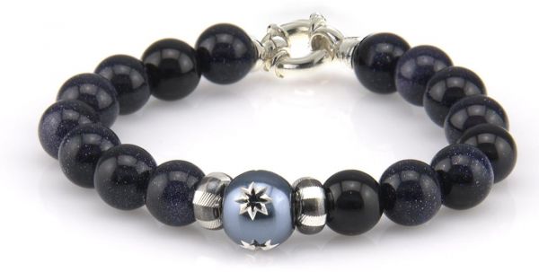 This Blue Sandstone bracelet makes a beautiful gift for him. The original helicoidal silver bead elegantly beautifies the heart of the bracelet, for a man with certain mysterious and poetic qualities.
