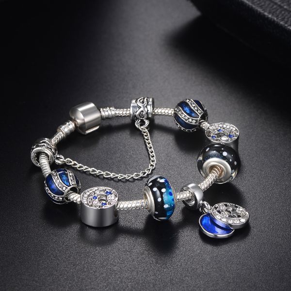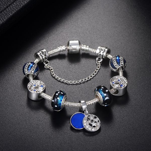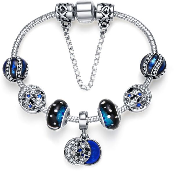 ★Romantic Charm Bracelet - The night is black, the sky is blue, the moon and stars is bling, and your love is deep. ★A Welcome Gift - You can give it to your daughter, niece, granddaughter, etc. as a birthday or festival gift. ★Give Her A Surprise - It is packed in a black gift bag, after opening she will be very satisfied with it. ★Suitable Size for Teen Girls - The length of the snake chain is 7.1 inches (18 cm), fit to the wrists of teen girls.