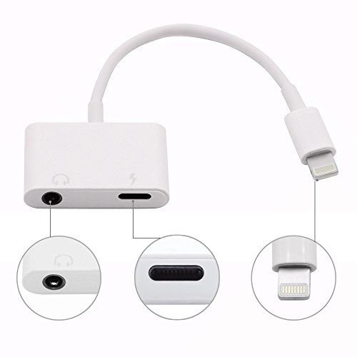 Casni iPhone dual lightning and audio jack 3,5 mm adapter that lets you charge and listen on your headphones in one time Suitable for iPhone 7, 8, 10 Easy to use