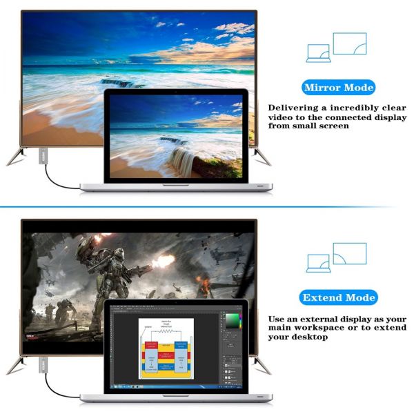 【Plug & Play】One-cable setup, No adapter or driver/software required. This hdmi adapter directly connects a USB-C computer(Thunderbolt 3) to HDMI-enabled TV/Monitor/Projector for video &audio transfer