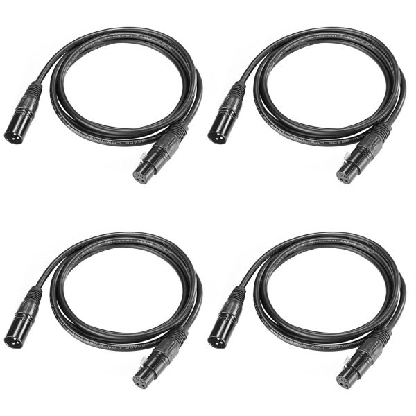 4 pack 6.5 feet/2 meters DMX Stage Light Cables Wires with 3-Pin Signal XLR Male to Female Connection.