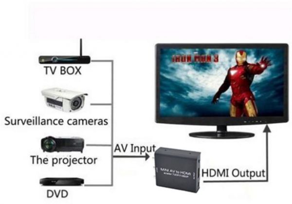 Composite RCA AV HDMI CVBS to HDMI Adapter Support HD 720P 1080P AV to HDMI Mini av2 hdmi Video Conv