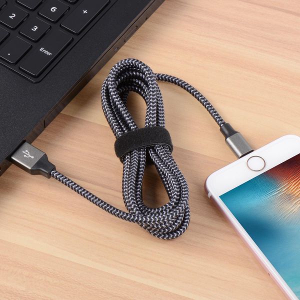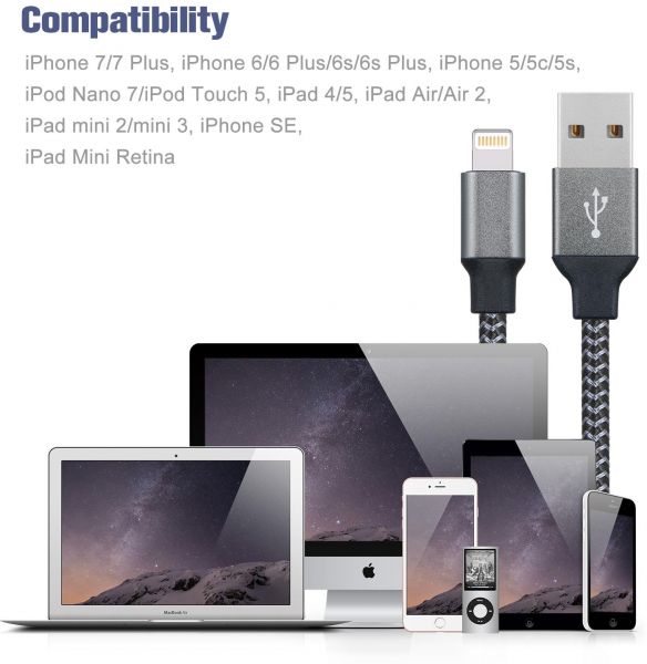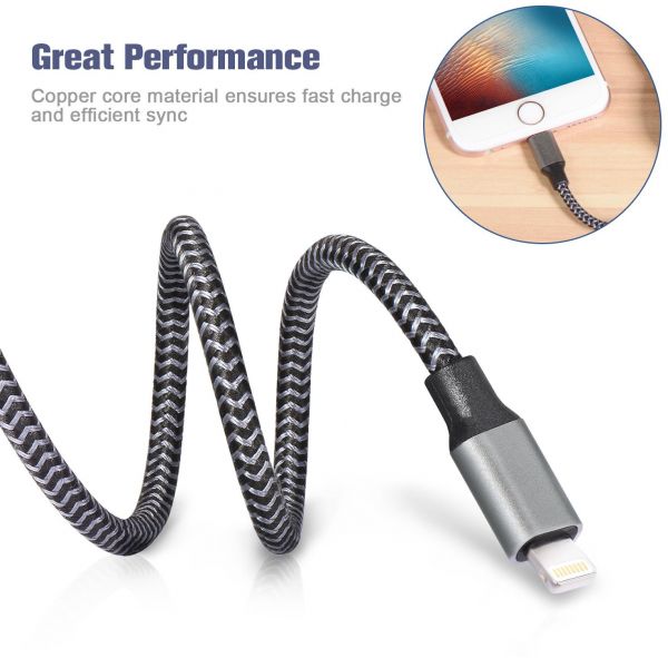 Instead of plastics or Polycarbonate sheathing, this iPhone lightning cable features a novelty high tensile nylon construction. Sturdy and tangle-free design-covered with braided nylon fiber jacket and anodized aluminum shell which is durable and sturdier than the normal lightning cable but also flexible and tangle-free.