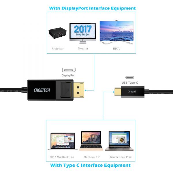 CHOETECH USB C to DisplayPort cable delivers a direct connection just