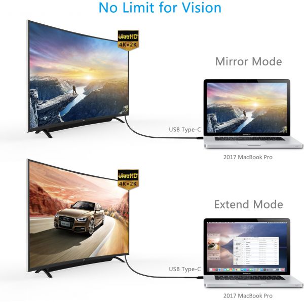 【Plug & Play】No additional driver/software required.Just connect to your Type c or thunderbolt 3 MacBook Pro / MacBook, iMac, Surface Book 2, Pixelbook, HP Envy 13,Chromebook to TV-HDMI port,up to 4K@60Hz resolution. Compatible with HDMI-enabled TVs/Monitors/Projectors for both video and audio transfer.