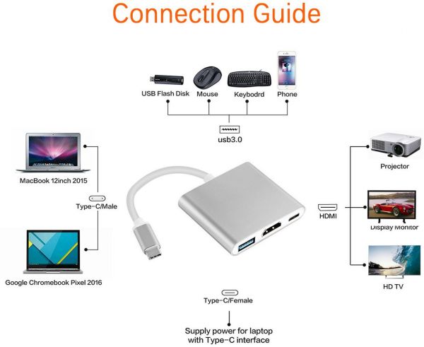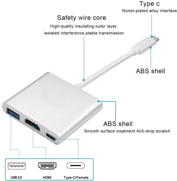 MRBIGER USB 3.1 Type-C To HDMI Adapter 4K,USB-C Digital AV Multiport Adapter,USB-C Converter Cable D