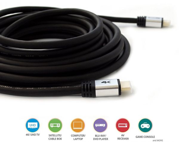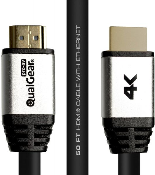 QualGear High Speed Long HDMI 2.0 Cable with Ethernet (50 Feet) - 100% OFC Copper, 24 Awg, 24K Gold