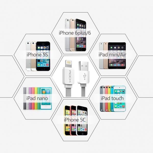 ROCK USB Cable for iPhone/ iPad mini/air/pro, Data Sync and Cable charger
