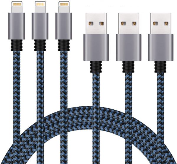 3-pack (1+2+ 3m) Nylon Braided 8 Pin Lightning to USB Cable for iphone 7/7 Plus/6s/6s Plus/6/6 Plus/