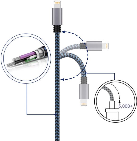 描述:High Performance Sync and charge simultaneously at the fastest speeds on your lightning devices. Safety Guaranteed with high performance. The compact aluminum connector helps to keep your devices safe.