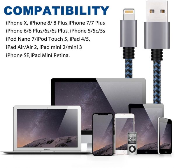 Super Compatibility Perfectly fit for charging and data transfer with the most devices with lightning ports: iPhone 7/7 plus iPhone 6/6s /6 plus/6s plus iPhone5/5c/5s/SE iPad Air/ Air 2 iPad with Retina Display iPad mini/mini 2 / mini 3 iPod Touch 5th gen iPod Nano 7th gen
