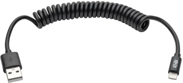 The M100-004COIL-BK USB Sync/Charge Coiled Cable connects your latest-generation iPhone, iPad or iPod to the USB-A port on your USB charger, laptop or desktop computer, so you can charge your Apple device and transfer data at the same time. The cable features a reversible Lightning™ plug that connects to your Apple device in either direction, ensuring a fast, fumble-free connection. <br /> <br />The M100-004COIL-BK is MFi-certified for use with iPhone, iPad and iPod devices. It's compatible with iPhone 5, 5c, 5s, 6, 6 Plus, 6s, 6s Plus, iPad (4th generation), iPad mini, mini 2, mini 3, mini 4, iPad Air®, Air 2, iPod touch® (5th generation), iPod touch (6th generation) and iPod nano® (7th generation).<br /><br />The specially coiled cable takes up much less space than a regular four-foot cable. It also resists tangles and knots, making it convenient to store in your car or carry in your purse, backpack or laptop bag. Nickel-plated connectors ensure excellent conductivity, improving performance.