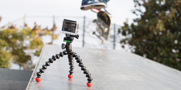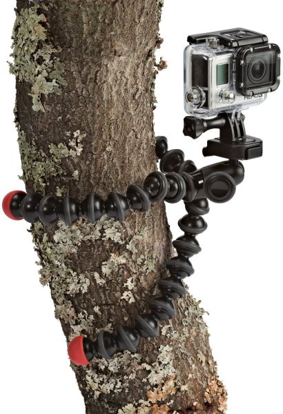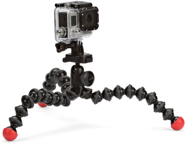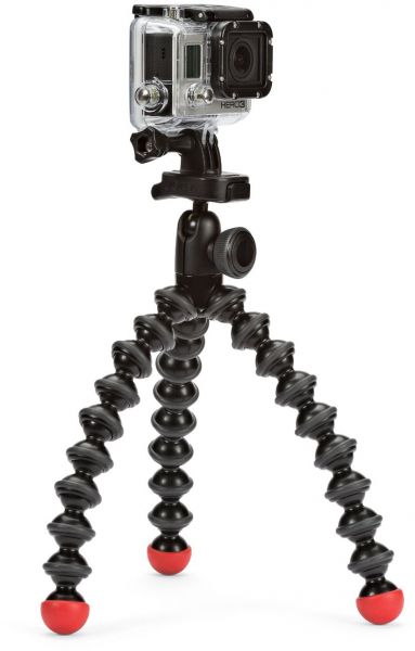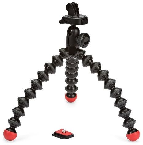 An integrated aluminum ball head provides 360° of pan and 90° to -90° of tilt for getting the composition that you want. For getting level shots with action cameras without an LCD screen, a bubble-level is conveniently placed on the head. The tripod comes with two quick-release plates; one for GoPro cameras, and one with a standard 1/4"-20 screw. The GoPro mount can also be used on any tripod, including all GorillaPods, with a 1/4"-20 tripod mount.
