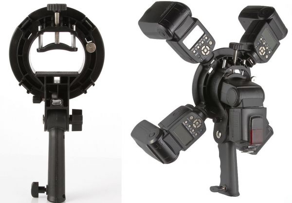 Upgraded patented product, this S-type speedlite bracket is superior all-in-one portable design, light weight and portable, plug and play upto 5 speedlites