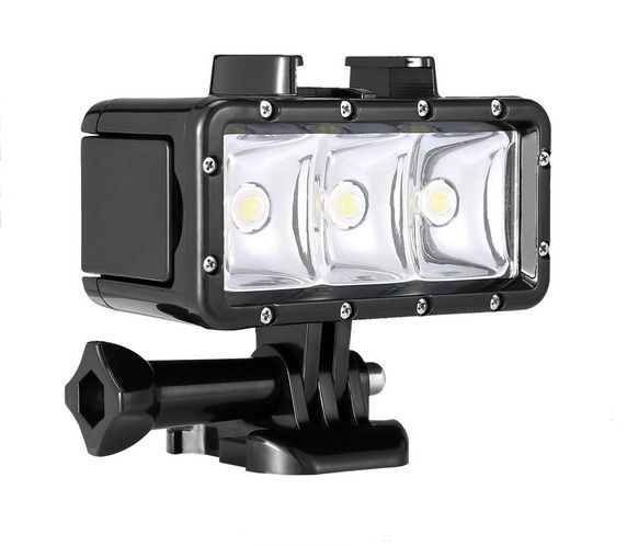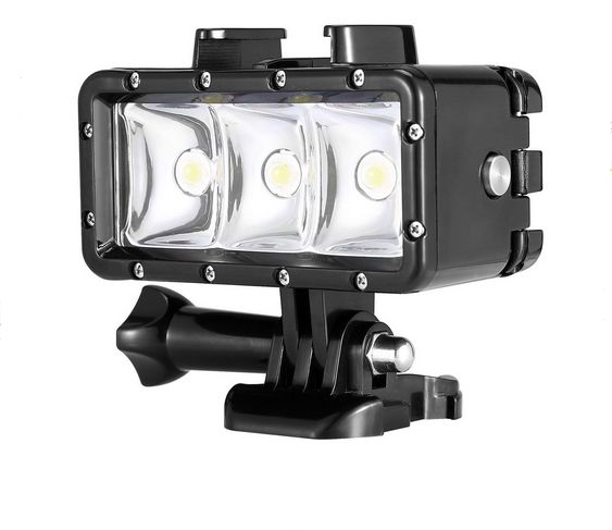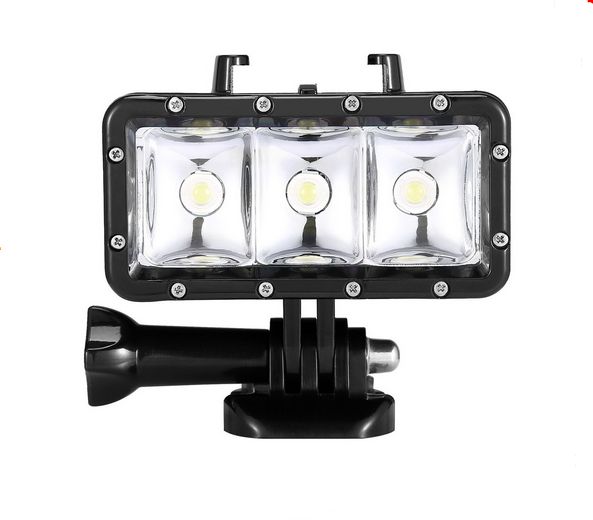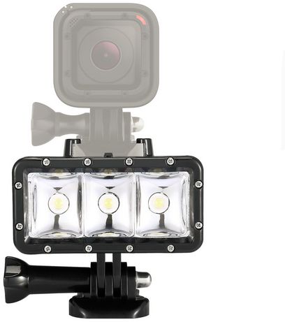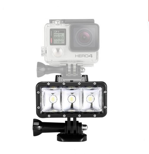 Product Description:Compatible with for GoPro Hero 4/ 3+/ 3/ 2/ 1, can works with other GoPro accessories like a hand grip.Compatible with for SJCAM SJ4000, SJ5000Compatible with for Xiaomi Yi Camera Functions:Waterproof up to 30m/ 98.4ft.Wide-angle. 300Lumen Max. (5500K-6000K) by 3 LEDs. 3 lighting modes, High/ Low light and SOS.Integrated GoPro mounting system.Battery capacity: 1200mAh. Running time: High light (1.5 hours); Low light (4 hours); SOS (6 hours)Package:1x waterproof light