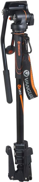 VEO 4 Section Monopod with 2 way Video Pan Head3 Retractable legs each fitted with anti slip rubber footBall joint for tilt action and Smooth panningMulti functional use For video, Photo and use as walking stickUltimate strength flip locks to Maximize loading capacity Soft Rubber handle provides an unbeatable grip in any weather13.2lbs Load capacity, 60 to 65 inch maximum Height