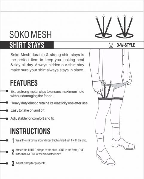 Soko Mesh Premium Shirt Stays | Shirt Holders | 2 Pcs | Unisex | Look Tidy & Neat All Day | Adjustab