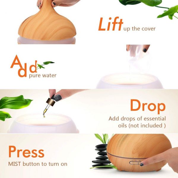 4. [ Unique & Compact ] - This aroma diffuser is coated with wood grain, which makes it look very natural and primitive. With compact and portable design, the cap of the aroma diffuser is easy to take off, you won’t bother to unscrew the cap with great force when your hands are wet.