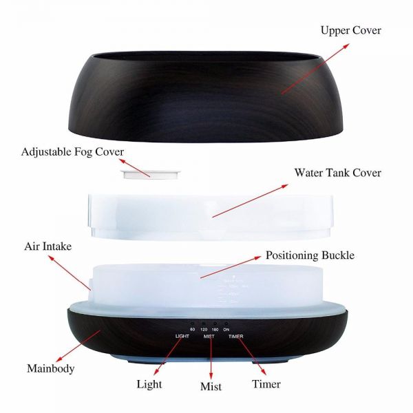 - 5-in-1 device; aromatherapy diffuser adopts ultrasonic technology and keeps your living space moist, prevent stuffy air and flu/cold germs infecting your loved ones. Prevent damage from second hand smoke, stale air and allergens. Unit may also be used as a non-aromatherapy humidifier. Guard against dry cough, sinus irritation, dry skin. Help skin hold in moisture, relieving dryness in dry and humid months.