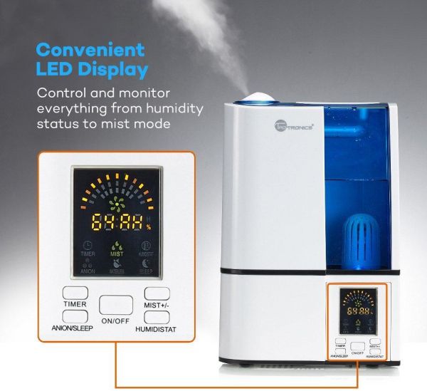 TaoTronics Cool Mist Humidifier with No Noise, LED Display, Ultrasonic Humidifiers for Home Bedroom,