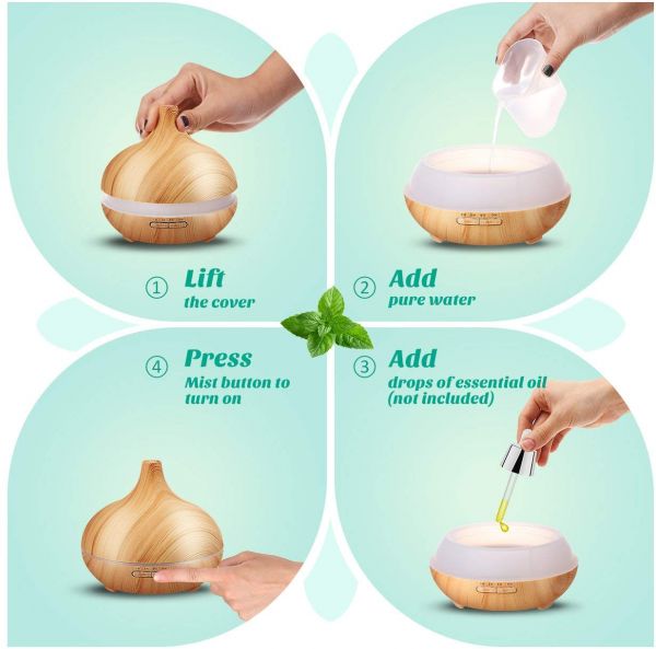 2. [ Purify Air & Quiet Comfort ] - Adopted ultrasonic technology, this diffuser is whisper-quiet when working. It gives out ultra fine and smooth mist which can soften and moisten dry and chapped skin in winter. It also helps you breathe better when you are sleeping with air conditioner on.