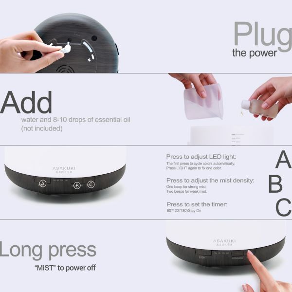 Creating a fragrant, pleasant, and healthy atmosphere in your home was never easier. All you have to do is pour 2-3 drops of your favorite essential oil in the diffuser, fill it with water and turn it on.