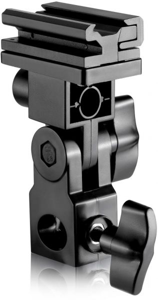 An useful flash light mount for your cameras that is adjustable to accommodate a wide range of hot shoe flashes.