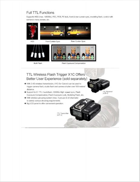 Compatible with Godox X1T-C, E TTL Transmitters, and X1R-C Receivers