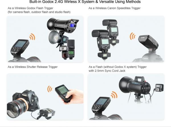 Built-in Godox 2.4G wireless X system & versatile using methods.