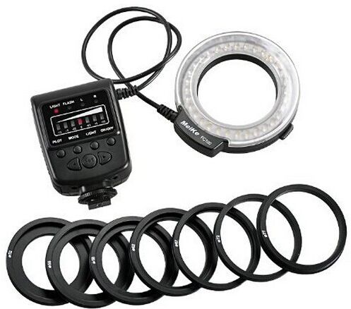 feature :It is designed for close up, macro, medical, scientific and forensic photography as the flash light source is positioned directly between the camera lens and subject providing an even illumination.Full innovation Led technology.More approach natural light use high quality led light.There are seven levels luminanceIt is meets the higher photography needs under the innovation functionLeft and right flash function make the object appeared third dimensionFit for macro shot, scientific research, medical and personal hobbies of photography.Mount the flash product on the lenses.1. Attached are equipped with52mm, 55mm, 58mm,62mm, 67mm, 72mm 77mm, seven different adapter ring.2. Press the annular light lock and place on the lens with adapter ring, loosen lock button, when annular light have locked in the adapter ring already.Four working mode:Light mode,Flash mode,L mode(Left half of the annular flash),R mode(right half of the annular flash).